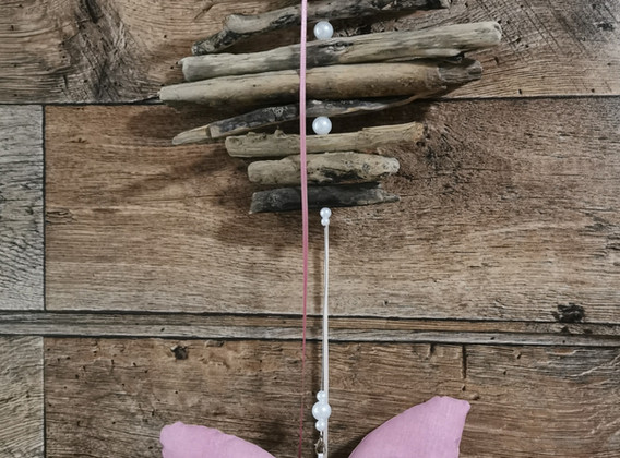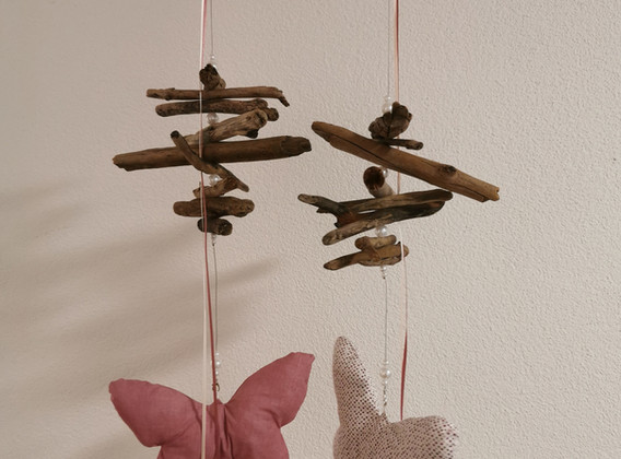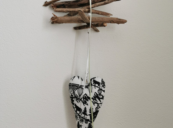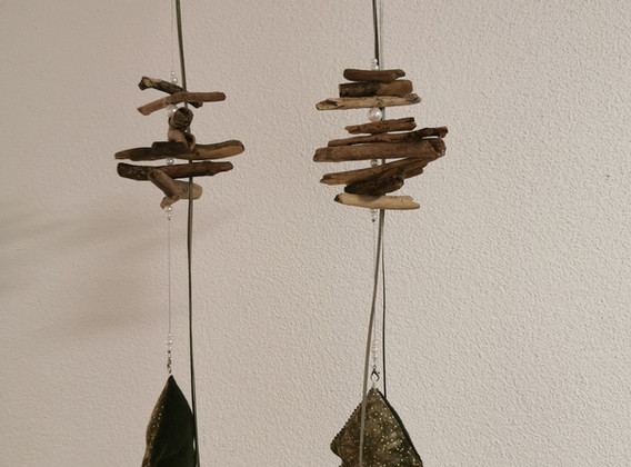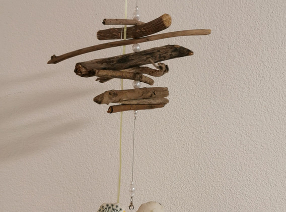 Mit Schwemmholz aus der Region, schönen Perlen und selbst genähten Stoffanhängern stelle ich einen passenden Schmuck für jede Wohnung zusammen.