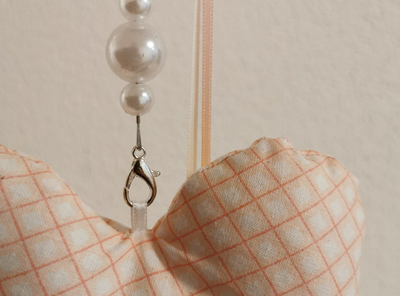 Durch den kleinen Karabinerverschluss unten an der Girlande lässt sich der Stoffanhänger je nach Jahreszeit oder Anlass individuell auswechseln.